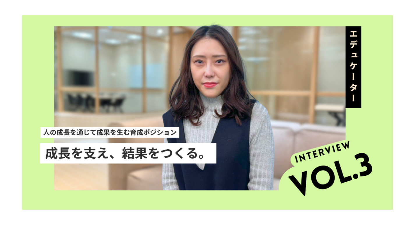 約6年間カウンセラーとして従事したのち、異動やヘルプを重ねても安定して成果を出せていたことからお声がけをいただいて、エデュケーター制度が立ち上がったタイミングでキャリアアップを叶えました。プレイヤーとして数字と向き合い続けてきたからこそ、次は“成果を出せる人を育てる側”として組織に貢献したい、これまでの経験を次世代へ還元したいと強く感じてエデュケーターの道を選びました。
