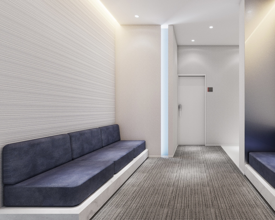 院内は、白を基調とした清潔感ある空間の中に、爽やかなブルーがアクセントされています。