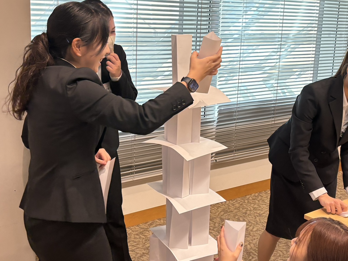各グループに別れ、A4用紙でタワーを作り、一番高いタワーを作ることができたチームが優勝🏆というルールです。
